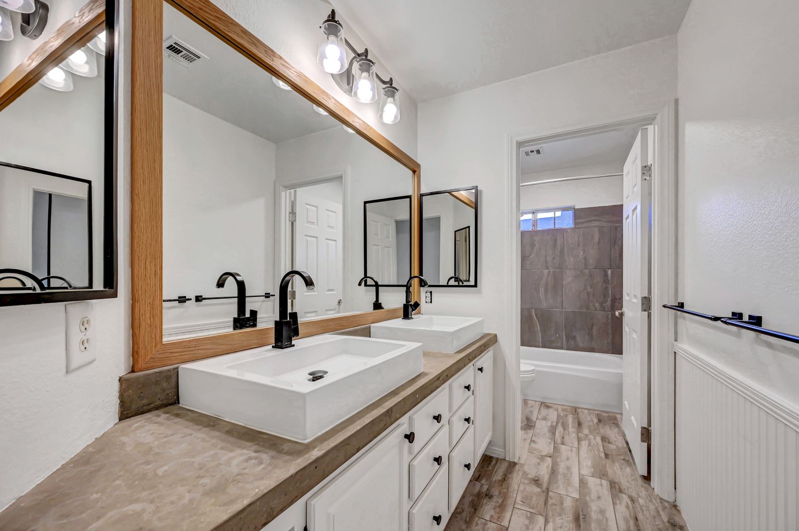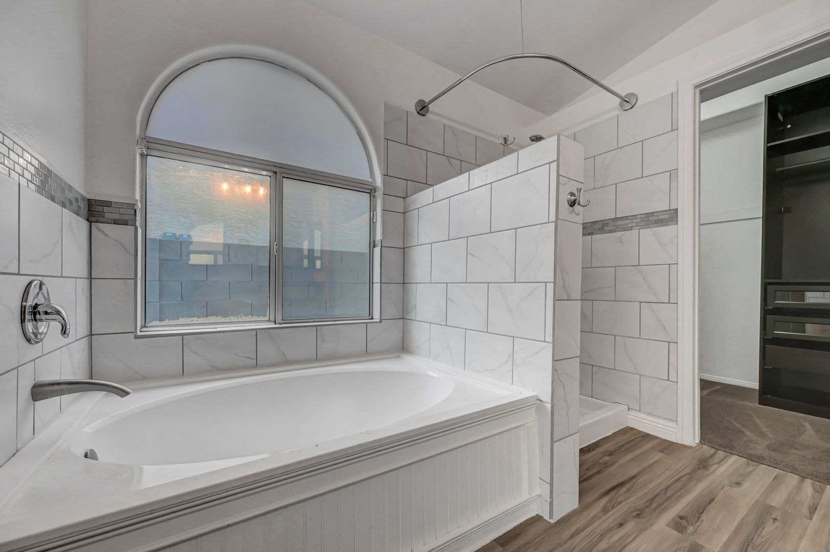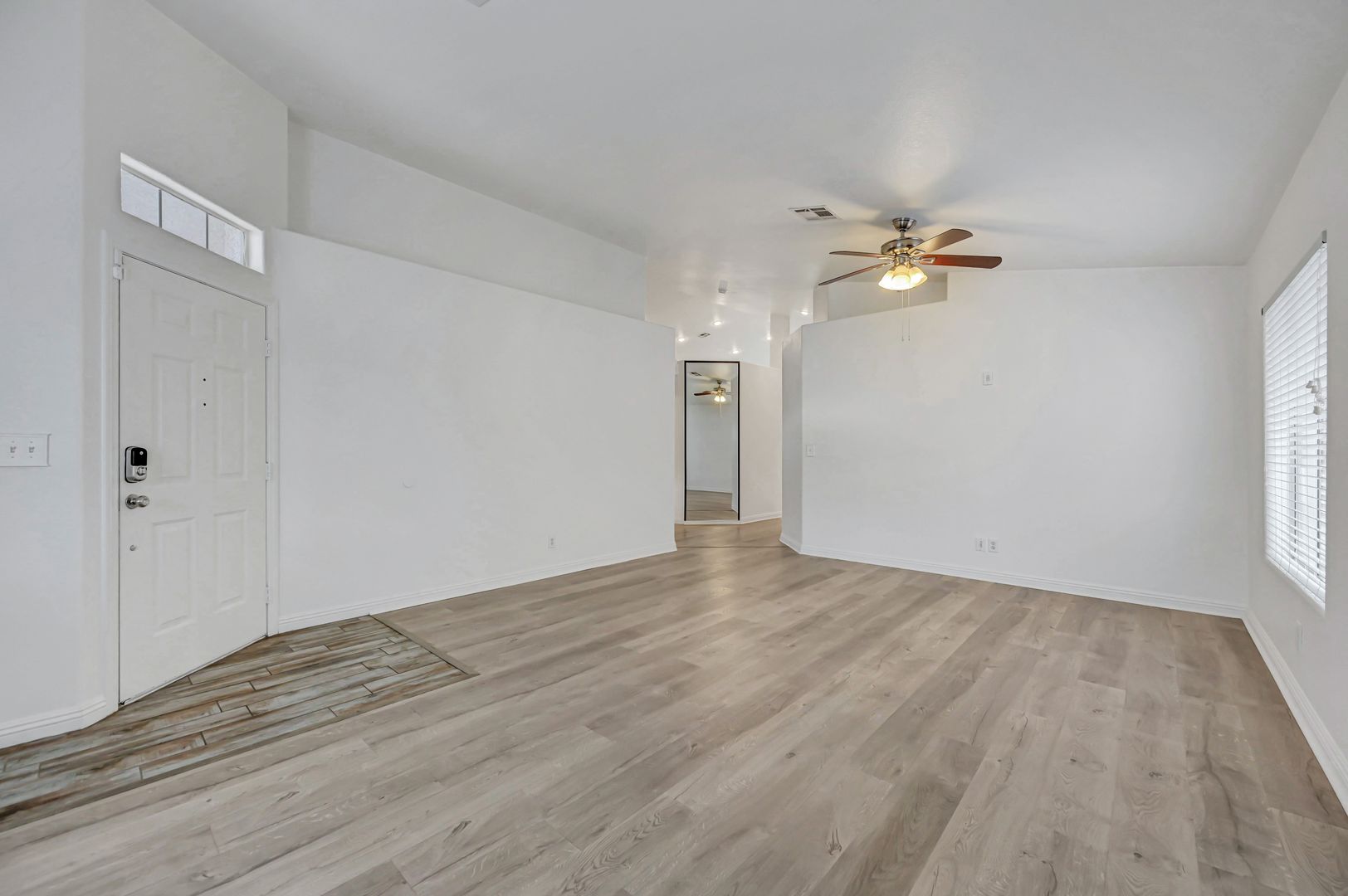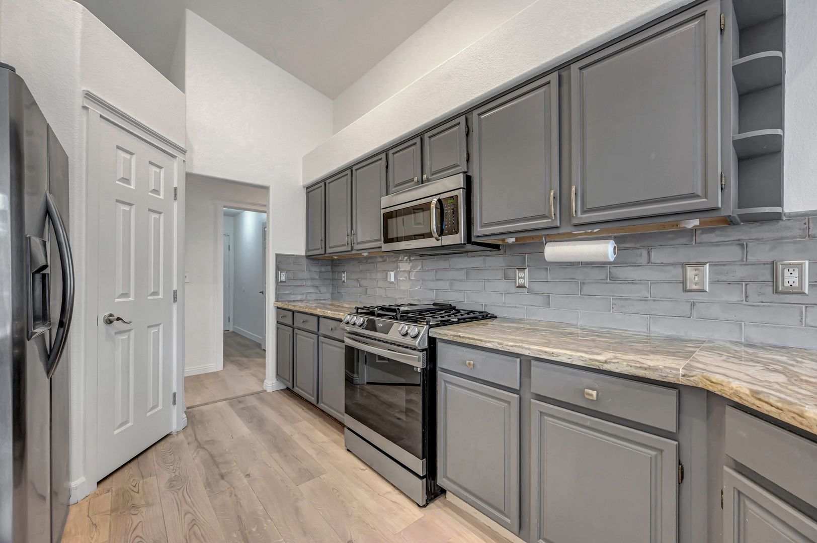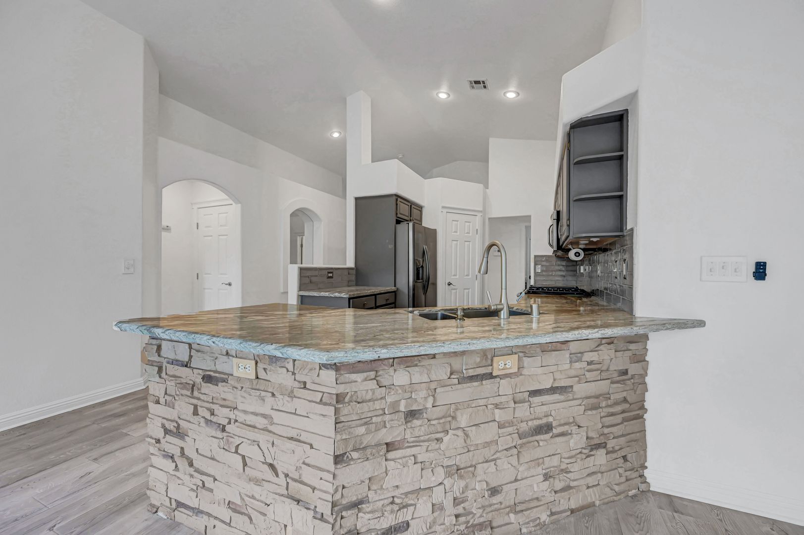 Come see this beautiful three bedroom two bath pool home today. This home features luxury vinyl plank flooring, an upgraded kitchen with granite countertops, stone featured island and custom cabinets. The backyard offers a fully fenced pool and turf. The primary bathroom has been upgraded with luxury vinyl plank flooring, custom tile shower and custom vanity. The primary closet boasts built in features. The living room offers a fireplace for a cozy evening in. Ceiling fans located throughout the home.