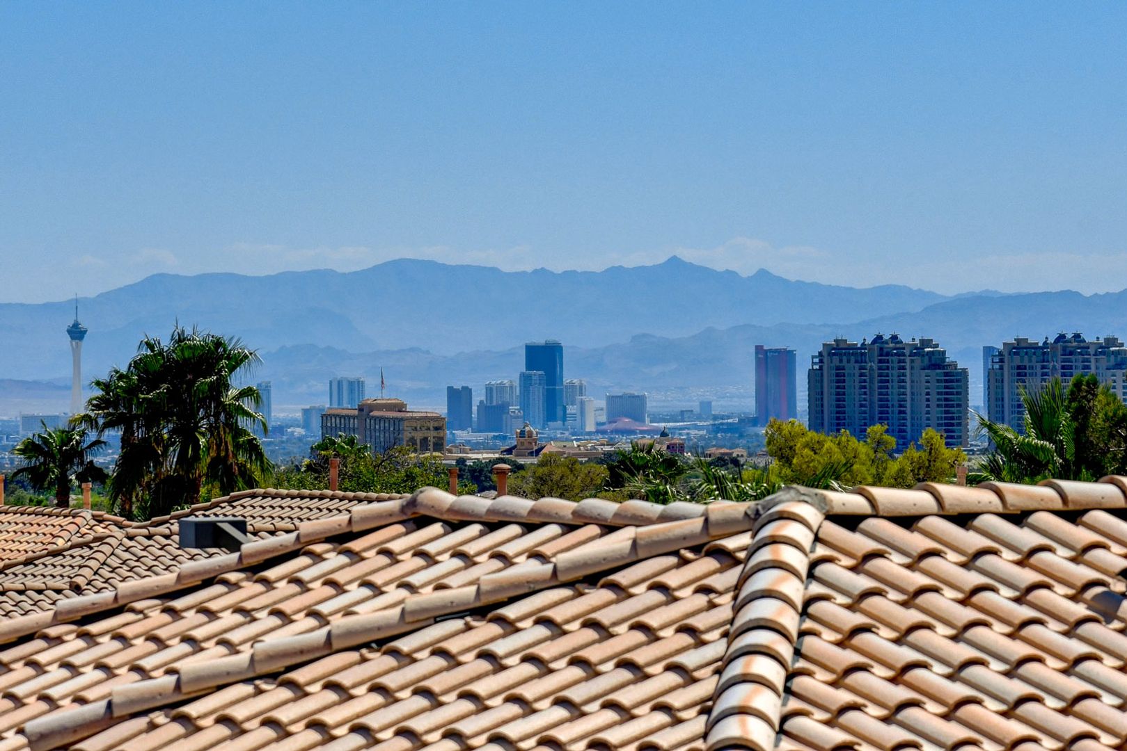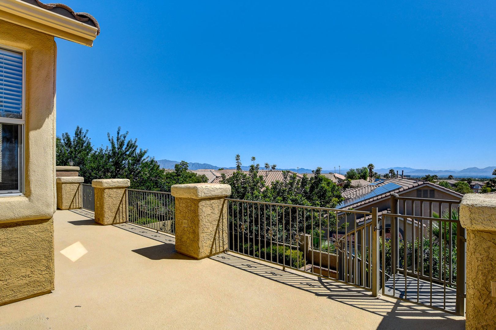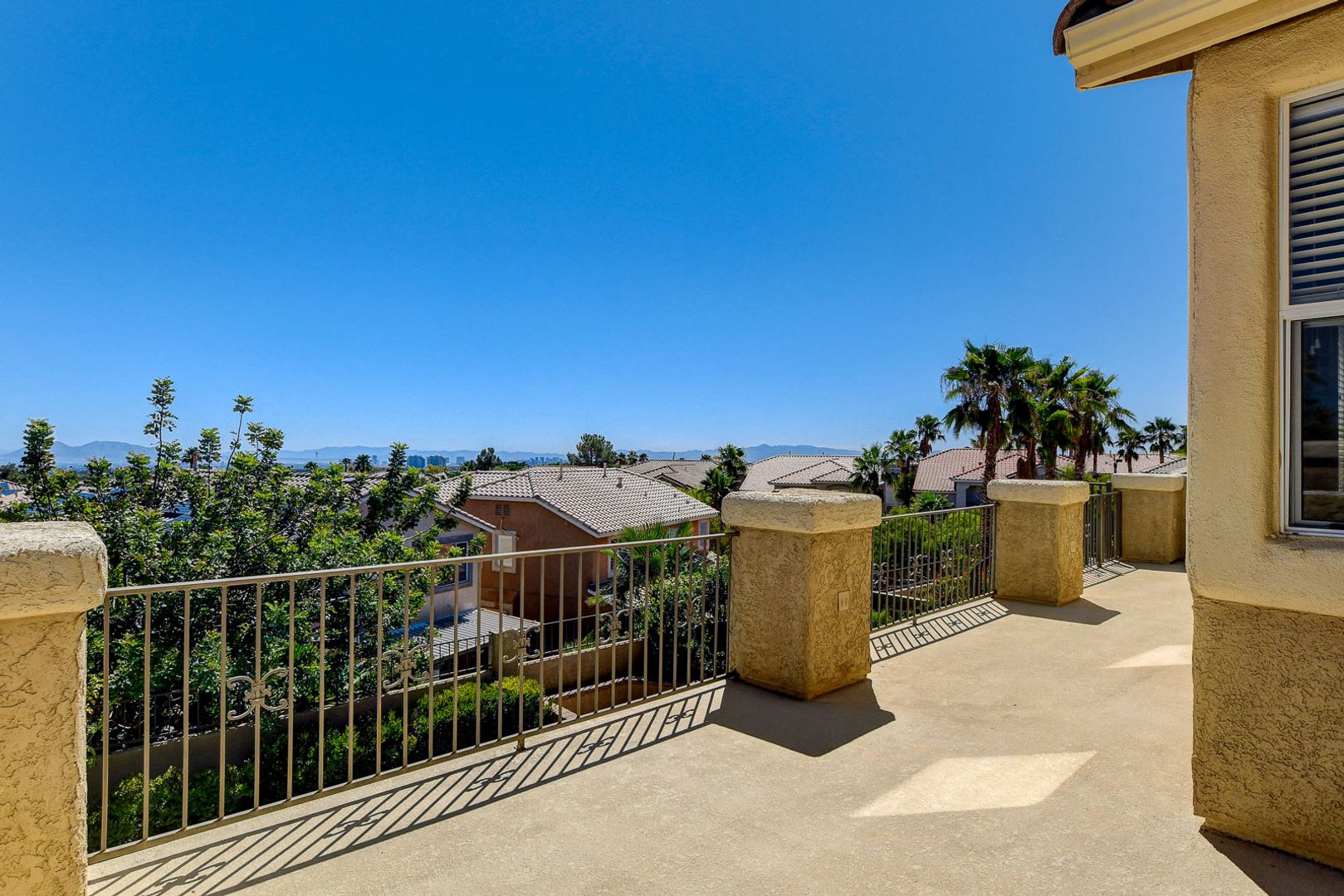 New banister leads up to your master suite w/full Strip views. Custom tub, walk-in shower, and dual sinks. Large loft w/balcony.