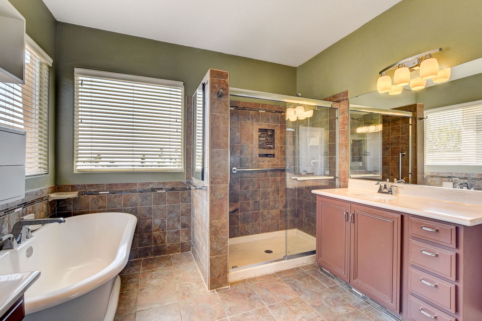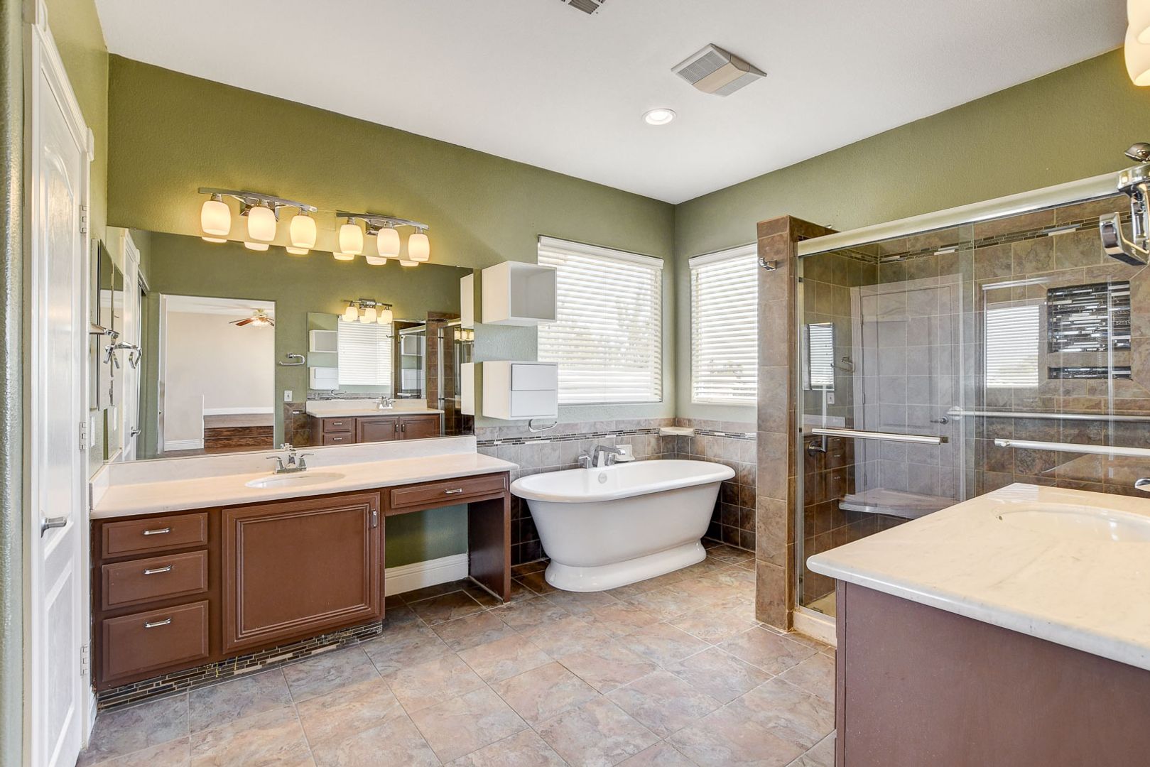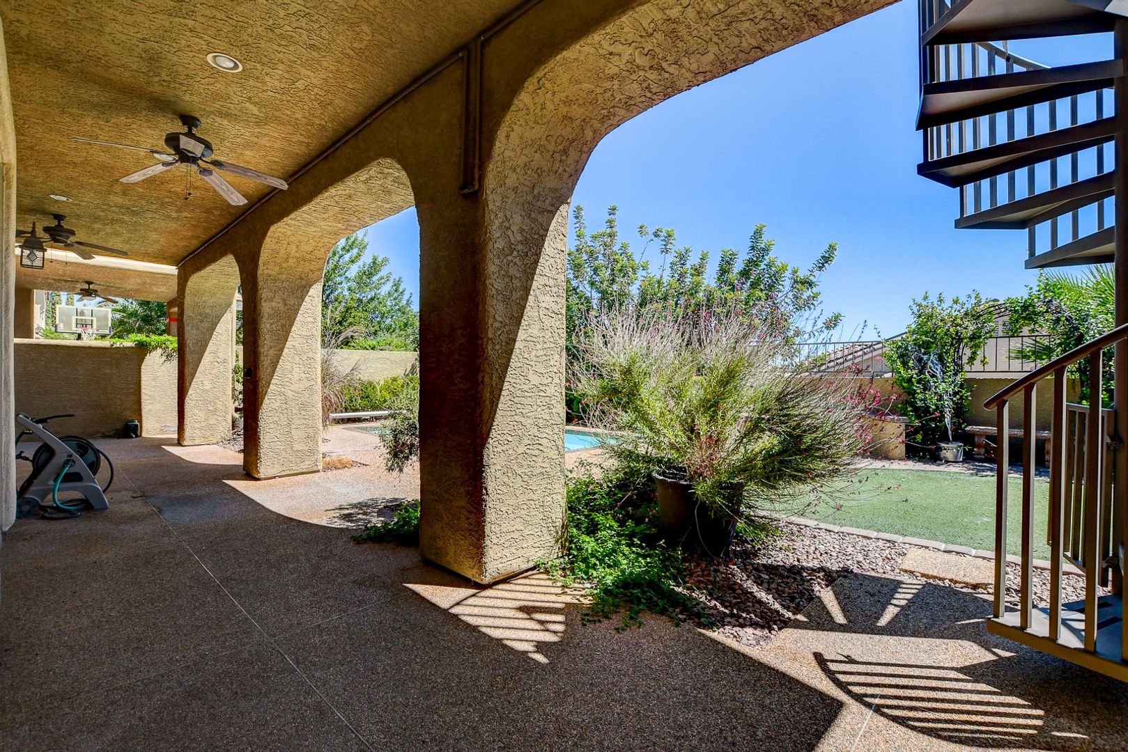 New banister leads up to your master suite w/full Strip views. Custom tub, walk-in shower, and dual sinks. Large loft w/balcony.