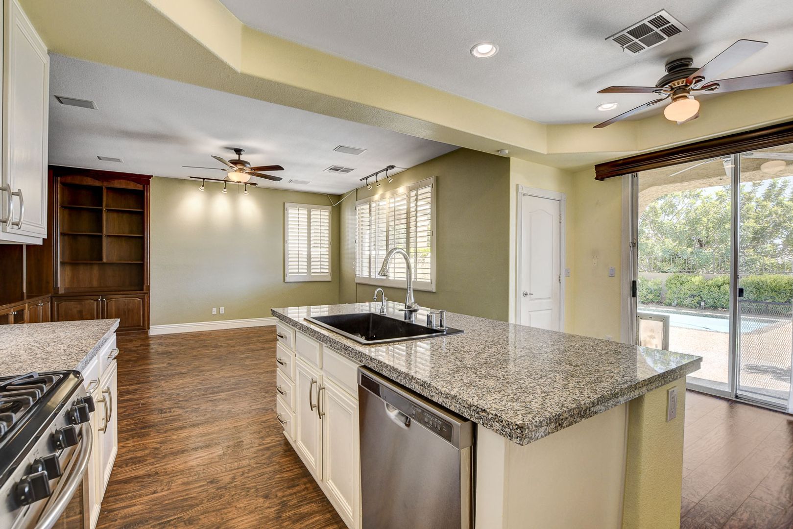 Open Kitchen w/granite, large sink & SS appliances. Cozy family room, large formal seating & dining.